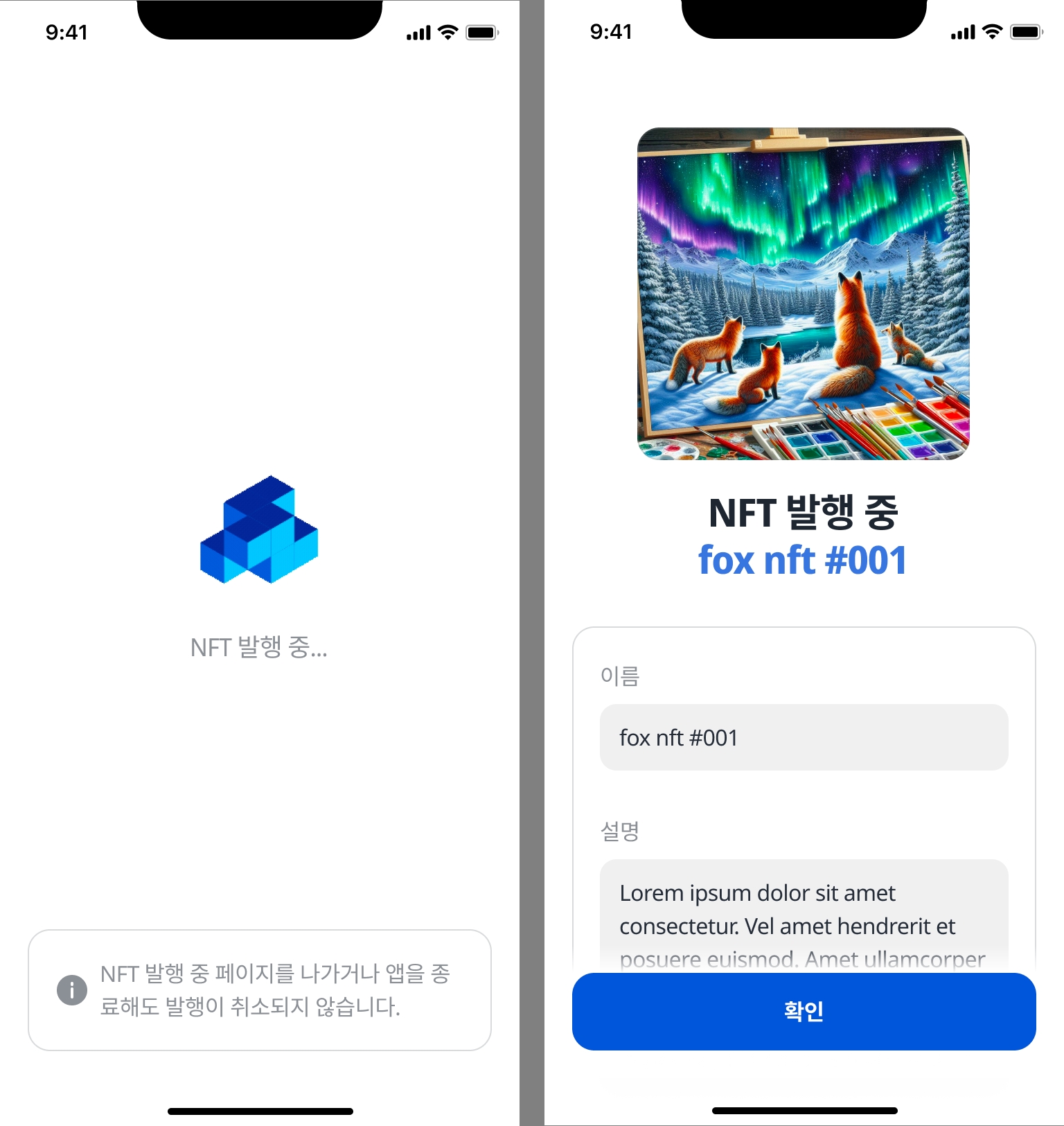 NFT chỉ được coi là phát hành thành công khi giao dịch thực tế trên blockchain được xử lý thành công. Ngay cả khi bạn thoát khỏi trang hoặc đóng ứng dụng trong quá trình phát hành, NFT sẽ không bị hủy, vì vậy bạn có thể yên tâm! Sau khi hoàn tất, bạn có thể kiểm tra NFT vừa phát hành trong trang NFT.