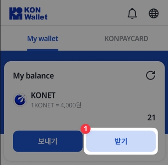 Từ màn hình chính, bạn có thể nạp trực tiếp KONET vào ví. Hãy làm theo hướng dẫn kèm hình ảnh một cách chậm rãi để có thể thực hiện nạp tất cả các tài sản đã được niêm yết trên KONWallet. Nếu bạn muốn nạp các loại coin khác không phải KONET, vui lòng nhấp vào "Quản lý Ví" ở thanh điều hướng phía dưới.