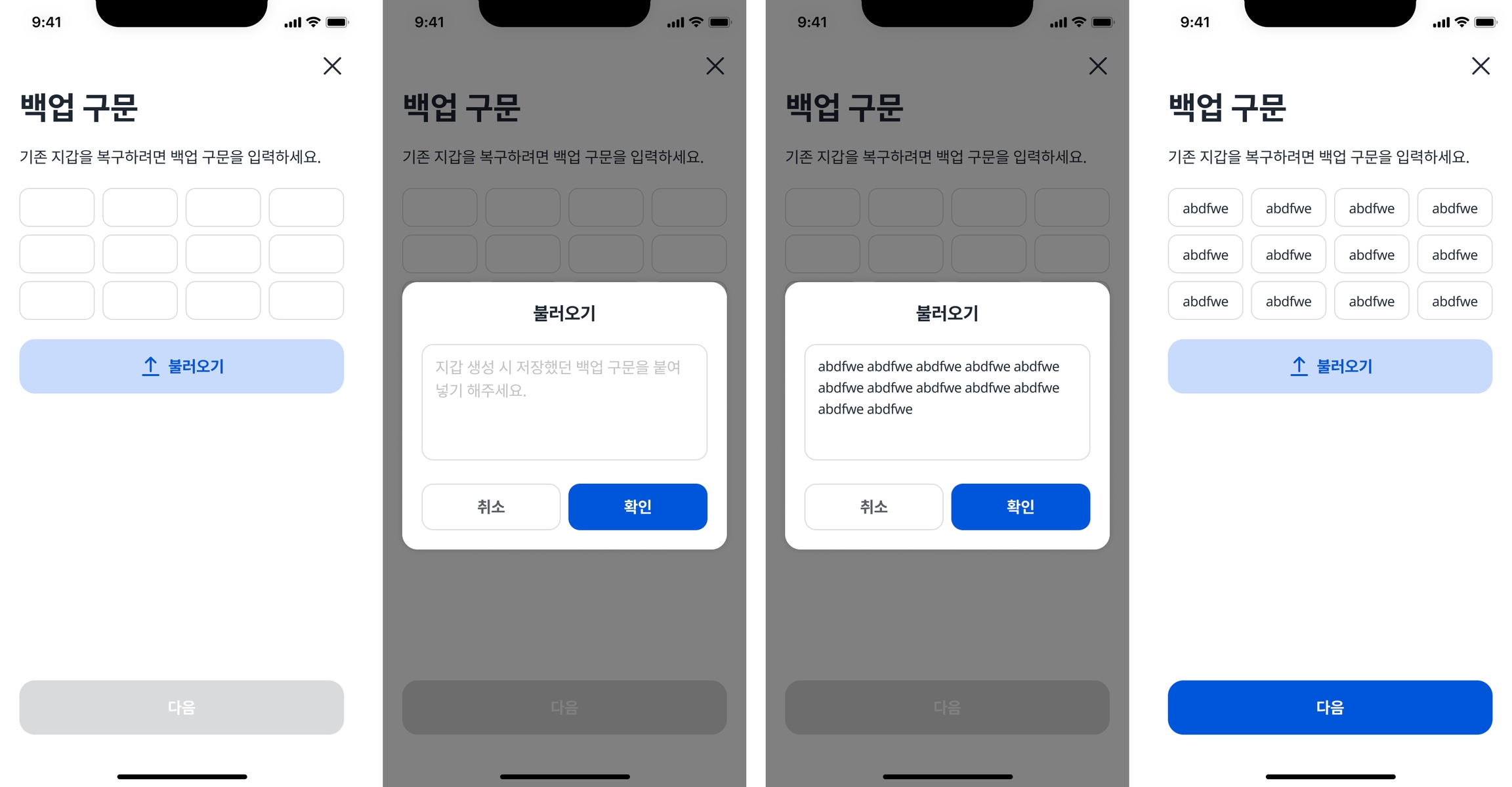 Tại đây bạn sẽ nhập cụm từ sao lưu đã lưu khi tạo ví KONWallet. Bạn có thể nhập từng từ một trong 12 từ, hoặc nhấn nút “Dán” để dán cụm từ sao lưu nhanh chóng.