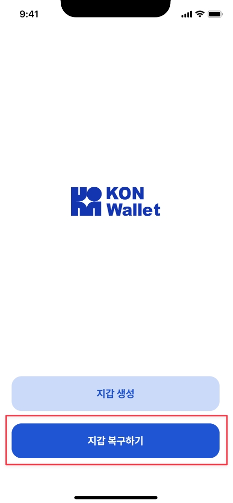 Tại màn hình khởi động của KONWallet, hãy nhấn “Khôi phục ví”.